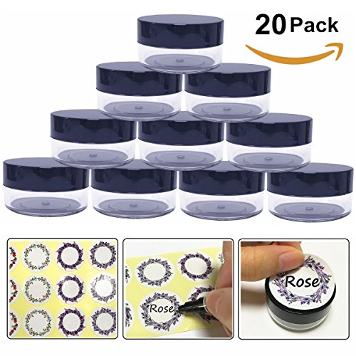 10gram/10ml Round Clear Container Jars with Black Lids for Lotion, Creams, Toners, Lip Balms, Makeup Samples - BPA Free (20 Pieces, Black)