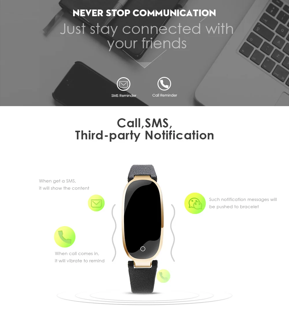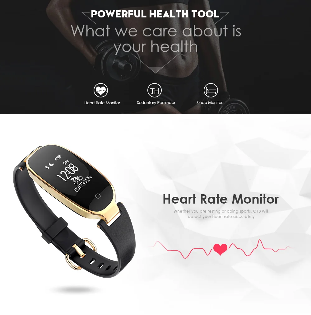 Function:Passometer,World Time,Sleep Tracker,Heart Rate Tracker,Alarm Clock,Remote Control,Fitness Tracker,Message Reminder,Week,Call Reminder