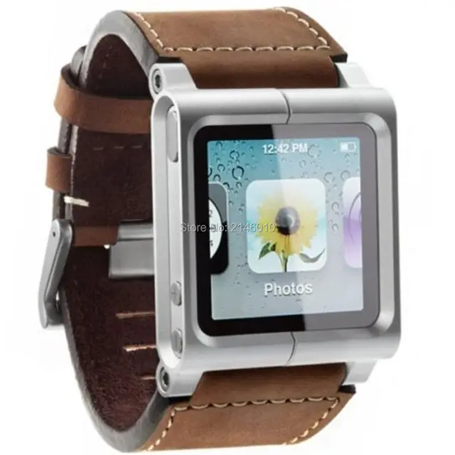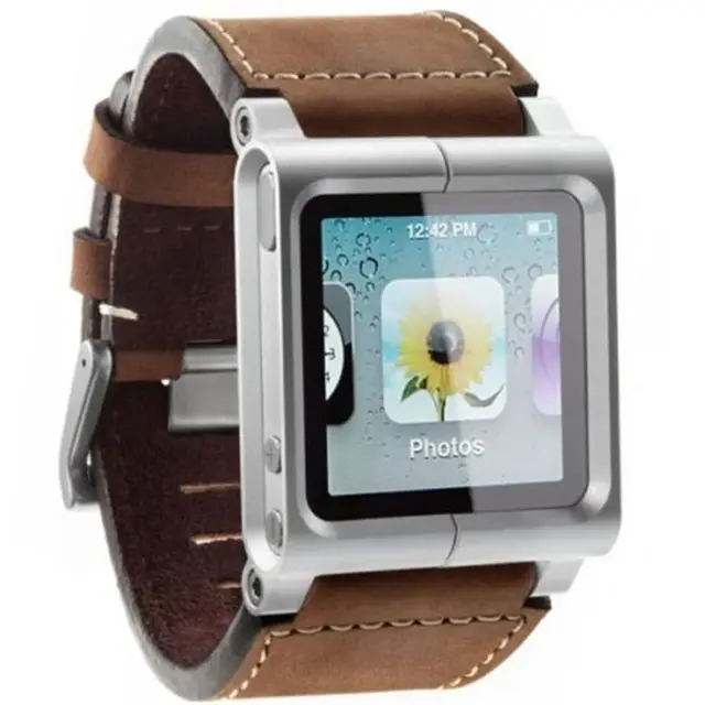 | [해외]가죽 알루미늄 시계 밴드 손목 스트랩 아이팟 나노 블랙 & 브라운 |