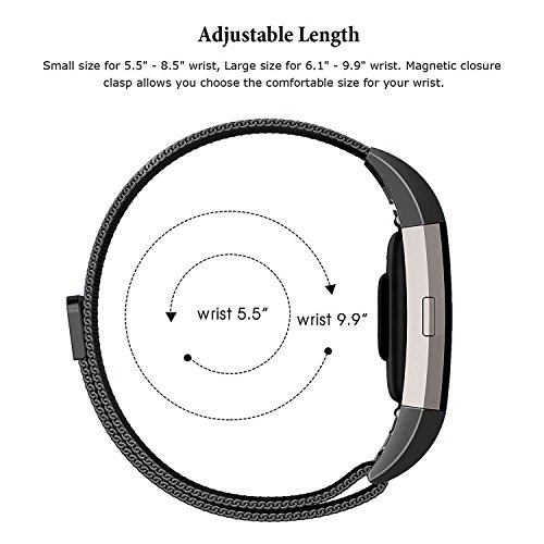 -. Feature : ecsem Straps Bands with Strong magnetic clasp closure, easily stick and lock your watch band, even in extreme conditions making it the ultimate accessory for your fitness tracker / Bands is Whole style, no need pins, never separated, more safe more strong!! Durable woven stainless steel mesh loop makes for a band that is pleasing to the eye and to the touch. Replacement Band Only. The Fitbit device is not included / Simple operation and easy size adjustment with no buckle. Fits all wrists sizes Small 5.5" - 8.5" Large 6.1" - 9.9". Whatever how big your wrist is, the bands is your best choice: large, x large, xx large, xxx large, the biggest is for 9.9" wirsts / With a simple latching mechanism your Fitbit Charge 2 is securely held in place with the option to switch out the bands quickly for another look / Order with confidence with a 1 year warranty for replacement or full refund without return the item.
