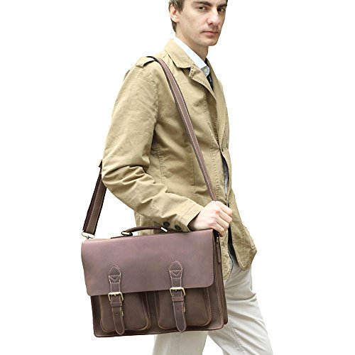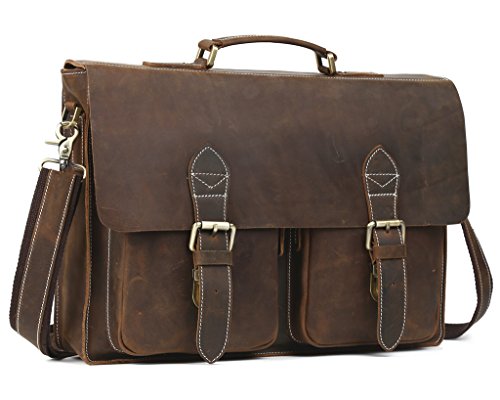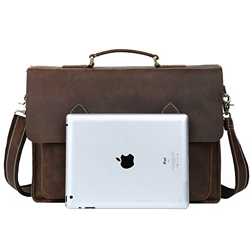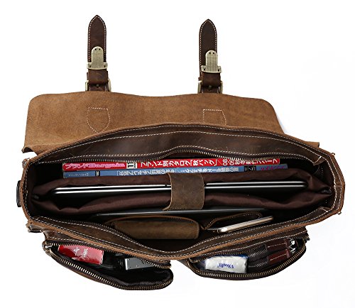 -. Brand : Tiding -. Department : mens -. Feature : 100% Guarantee genuine - excellent vintage leather / Thickness of durable genuine leather is 2mm / Buckle can be adjusted according to the capacity of the bag / Approximate External Dimensions: 15.3 x 11.4 x 5 inch / Main pocket can hold 16" laptop,laptop pocket can hold 14"laptop -. ProductGroup : Apparel -. ProductTypeName : LAGE -. Title : Tiding Men's Genuine Leather Handbag Briefcase 14 inch Laptop Messenger Bag