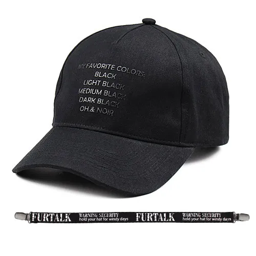 FURTALK 블랙 캡 남성 야구 모자 패션 브랜드 여름 스냅 백 조절 힙합 아빠 스냅 Hatss