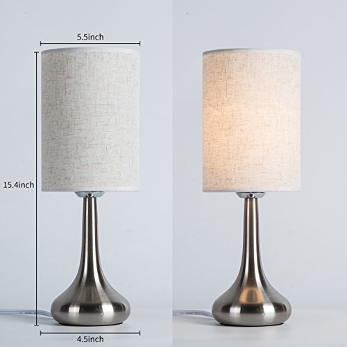 DIJIANI Fabric Shade Table Lamp with Bright Nickel Droplet Lamp Base Simple Style Night Stand Lamp Fashionable Bed Light for Living Room, Bedroom, Study, Hotel