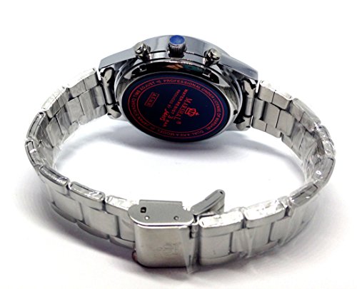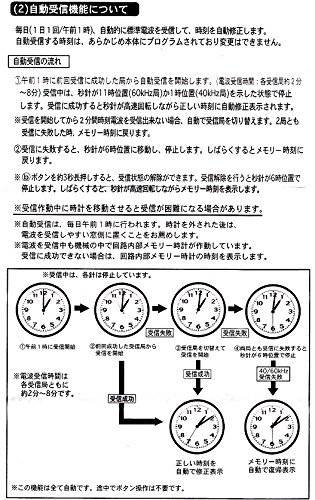 -. Feature : クオーツ(日本製) 毎日時刻を自動修正する電波ウォッチ 電池寿命約10年 / 独自の「針表示カレンダー 」機能 日本全国対応(40kHz・60kHz)、日常生活防水 / 高さ×幅×厚さ:約47mm×39mm×12mm 重さ:85g / 腕廻り:17.5~20.5cm / ケース:アロイ合金 / ベルト:ステンレス 専用ケース / 取扱説明書、保証書 組立は中国で行っています。