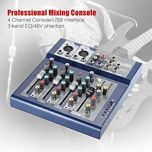 원본상품명: ammoon ミキサ ミキシング コンソル 4チャンネル 3-バンド イコライザ エフェクトプロセッサマイク入力