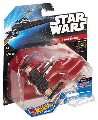 -. Binding : Toy -. Brand : Mattel -. EAN : 0782495702279 -. Feature : Two of kids' favorite brands - Hot Wheels and Star Wars - have joined forces! / Flight Navigator lets kids "fly" their starships! / Flight Navigator doubles as a display stand so kids can show off their collection / In a collectible scale that's small enough to fit in a pocket / Makes a great gift for fans of all ages -. IsAdultProduct : 0 -. Label : Mattel -. LegalDisclaimer : new -. Manufacturer : Mattel -. Model : DMP63 -. MPN : DMP63 -. PackageQuantity : 1 -. PartNumber : DMP63 -. ProductGroup : Toy -. ProductTypeName : TOYS_AND_GAMES -. Publisher : Mattel -. Studio : Mattel -. Title : Hot Wheels Star Wars Poe's X-Wing Fighter (Closed Wings) Die-Cast Vehicle -. UPC : 782495702279 -. Warranty : 1 year warranty against manufacturer defects