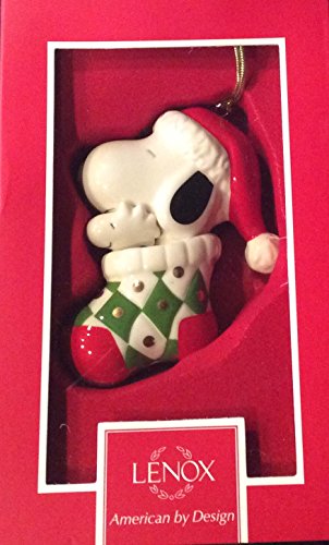 • Lenox Peanuts Snoopy in Stocking Ivory China Christmas Ornament