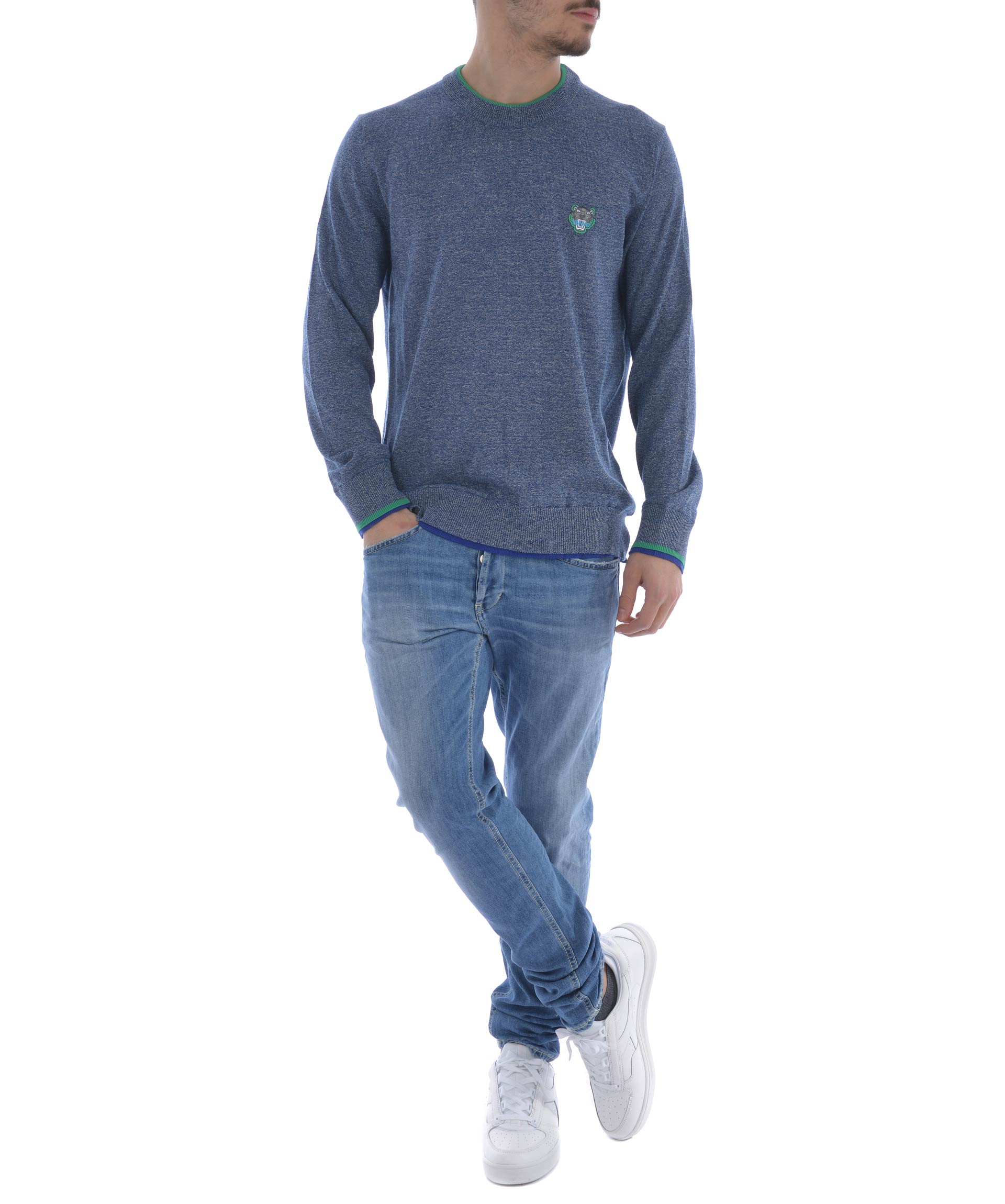 Mini Tiger Sweatshirt from Kenzo: Blue Mini Tiger Sweatshirt with round neck, long sleeves and ribbed collar, cuffs and hem.