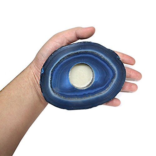1 (One) Agate Thick Geode Slice Candle Holder Rock Paradise Exclusive With Certificate of Authenticity AM17B2 (Blue)