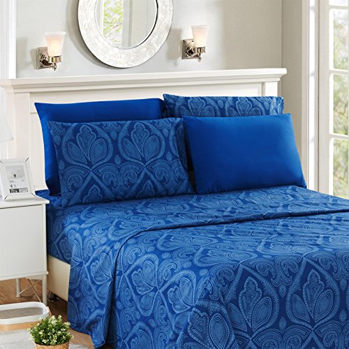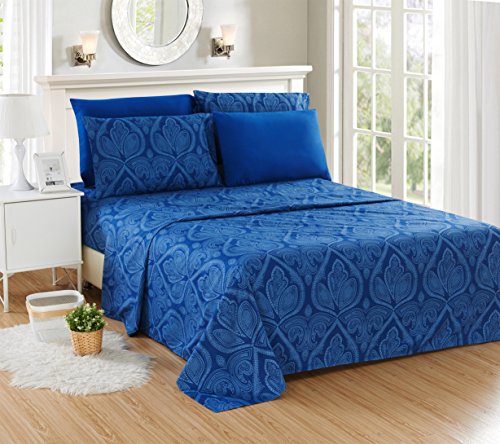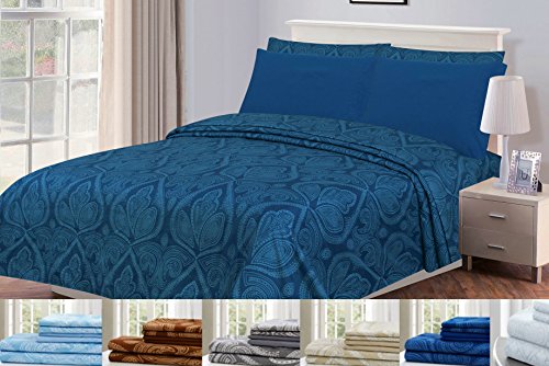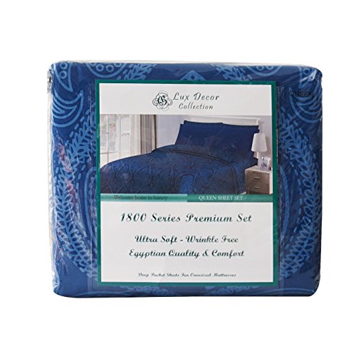 6 Piece: Paisley Printed Bed Sheet Set 1800 Count Egyptian Quality HOTEL LUXURY Flat Sheet,Fitted Sheet with 4 Pillow Cases,Deep Pockets, Soft Extremely Durable by Lux Decor (Queen, NAVY BLUE)