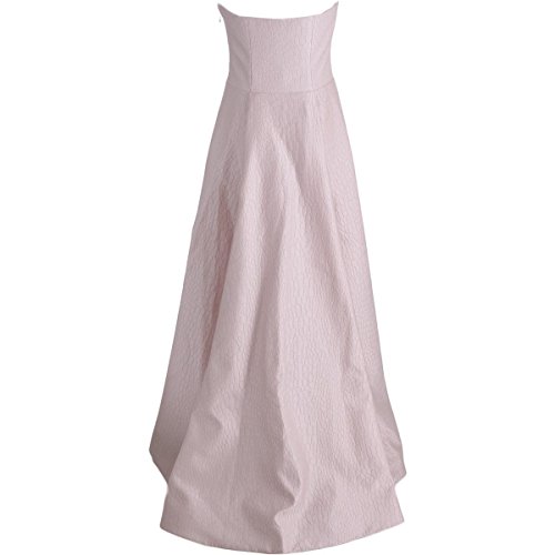 Fused materials create a unique, patterned effect on this elegant Halston Heritage gown. Boning contours the strapless bodice, and a wide pleat lends volume to the floor-length skirt. Interlining structures the hem. Hidden back zip. Lined.Feature