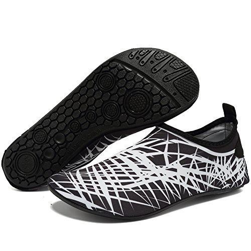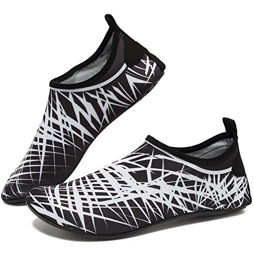 Fanture Water Shoes are popular in water sports and feverishly loved by entertainment lovers. When you wear water shoes sliding on the water, just like walking on land, smooth and flexible. The fashionable water shoes possess the effect of barefoot acupressure. A correct choice of wearing the aqua shoes in water sports or on hot beach. As an alternative of indoor slippers or walking shoes, when doing light outdoor activities or resting feet after rigorous exercise. Be ready for all your aquatic activities with these aqua socks. Slip on easily and enjoy a barefoot feeling no matter what activity you do.