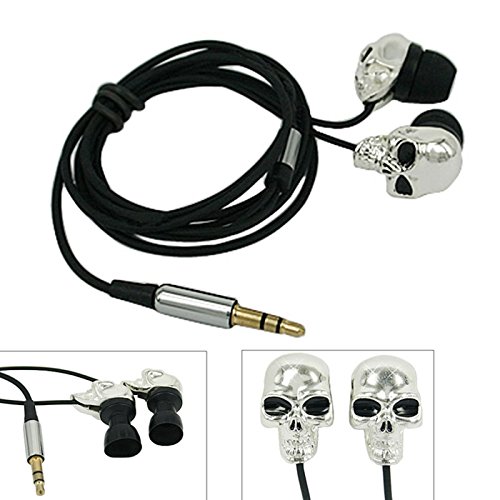 -. Feature : Ultra-clear sound quality and enhance bass response / Silver skull earbuds for portable gaming systems, mp3 players, phones, audio books, laptop computers, and other audio devices / Noise isolating Soft inner earbuds provides a comfort fit to your ears, so that you can enjoy uninterrupted music / Compatible for all Andoid or IOS or other smart devices with 3.5 mm audio jack / Lightweight design is ideal for listening during exercise, travel, or for everyday wearing