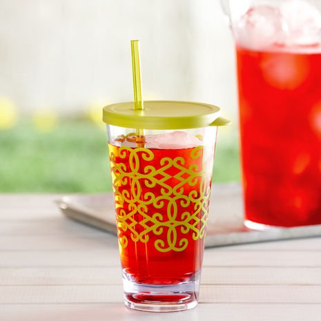 -. Feature : Double-walled tea tumbler / Tazo Rococo pattern / With soft lid and reusable straw / Holds 20 Fl Oz