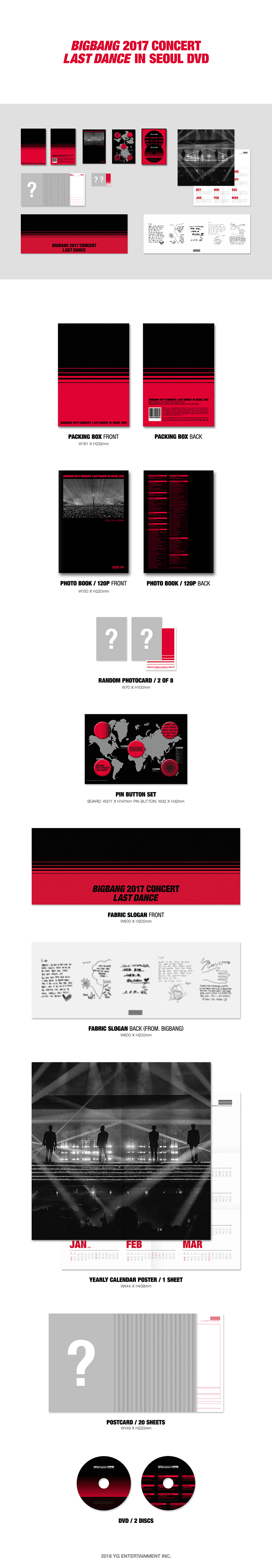 ‘BIGBANG 2017 CONCERT LAST DANCE IN SEOUL DVD’는 그 어떤 공연보다도 뜻 깊었던 ‘BIGBANG 2017 CONCERT LAST DANCE IN SEOUL’의 다양한 무대 실황을 총 2장의 디스크에 생동감 있게 담아내었다.