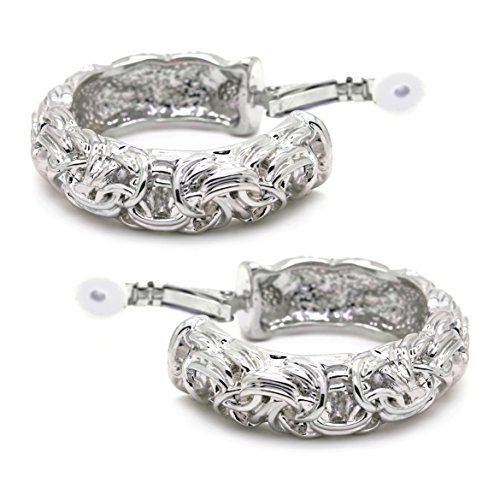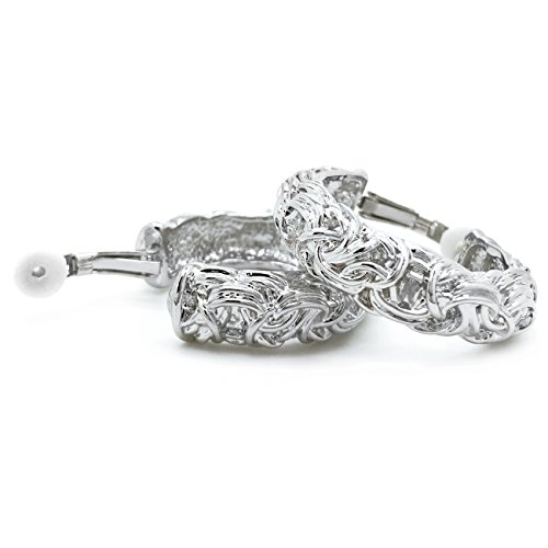 Classic Byzantine design that will never go out of style. Made of base metal alloy, these hoop earrings are featuring byzantium knot with ornate detailings and have substantial weight. Clip on backings secured these hoop earrings with ease and comfort. Casual and timeless at the same time. These fashion clip on earrings will make the perfect choice for your special someone for Valentine's gift, Christmas gift, Mothers day gift, Birthday gift, Anniversary Gift, or Bridal party gifts.Feature