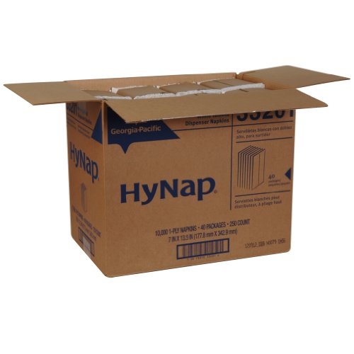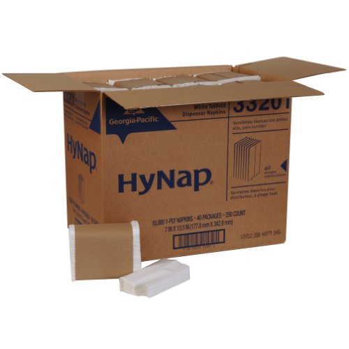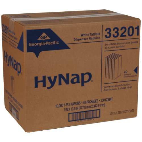 -. Title : Georgia-Pacific HyNap 33201 White Tall Fold Dispenser Napkin, 13.5" Length x 7" Width (Case of 40 Bands, 250 Per Band)