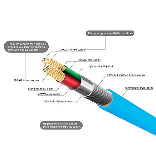 [Environmental Material] Premium Copper wiring wrapped in ultra durable and lightweight housing protects wires cores from over-heating and resists kinks. Re-enforced ends are built to withstand the demands of constant plugging and unplugging without wearing out.