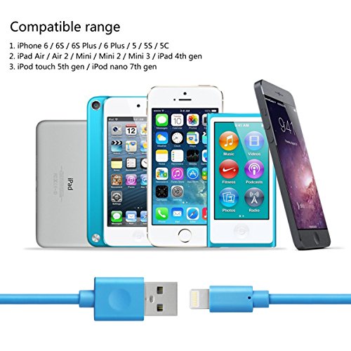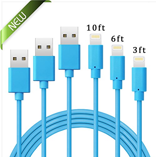 iphone Charging Cord,Avolare 3ft 6ft 10ft Value-pack iphone Chargers ipod Charger for iPhone SE 6S 6S Plus/6 6 Plus/5 5s 5c/ iPad Air 2 Mini 4 iPad Pro iPod Touch 5,Blue