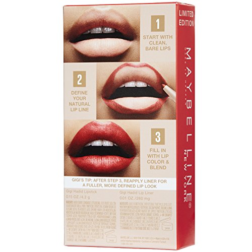 -. Binding : Health and Beauty -. Brand : Maybelline New York -. Label : Maybelline New York -. Manufacturer : Maybelline New York -. ProductGroup : Beauty -. ProductTypeName : BEAUTY -. Publisher : Maybelline New York -. Studio : Maybelline New York -. Title : Maybelline New York Gigi Hadid Lipstick and Lip Liner Kit, Austyn