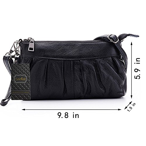 -. Title : Lecxci Women's Small Real Leather Crossbody Cell Phone Bags, Clutch Wallet Purse with Strap for Women