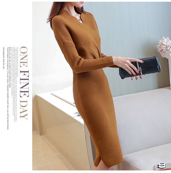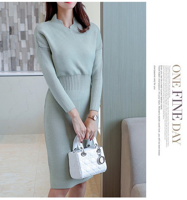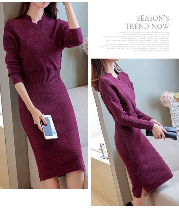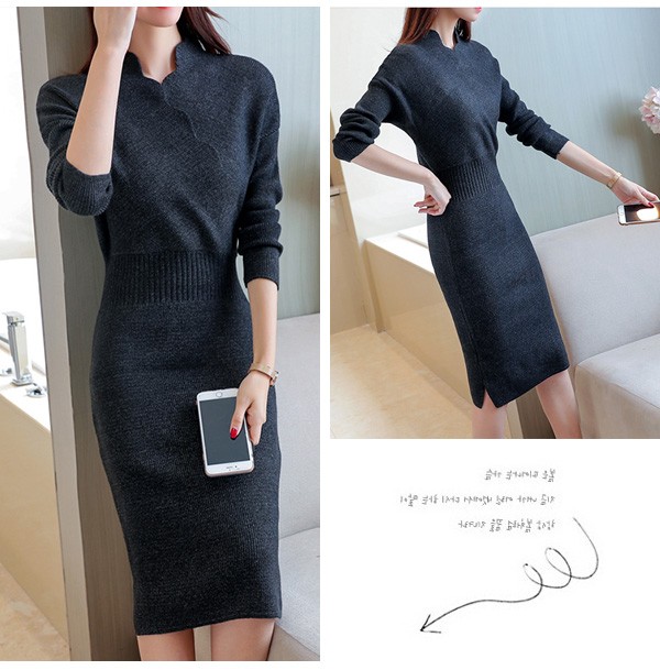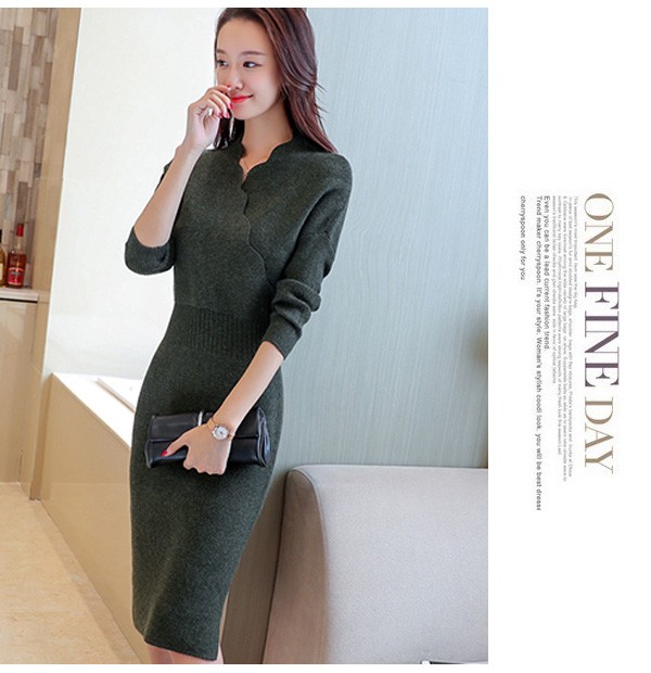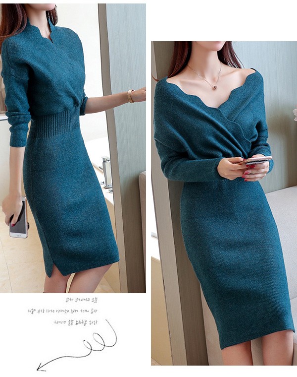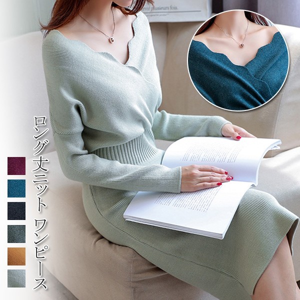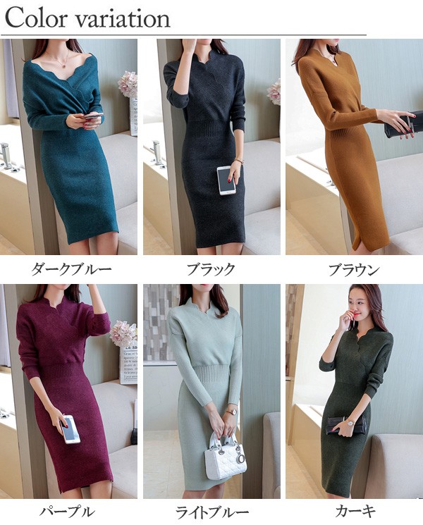 ウェーブVネックがお洒落なニットワンピースが新入荷♪