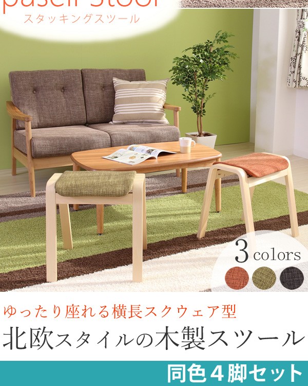 【商品名】スタッキングスツール/腰掛け椅子 【同色4脚セット】 ファブリック木製脚 オレンジ(橙) 【完成品】
