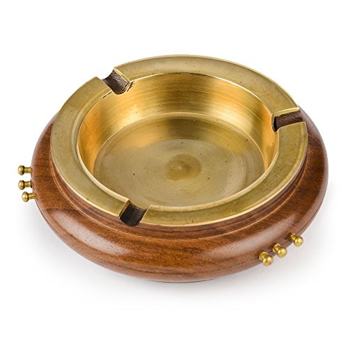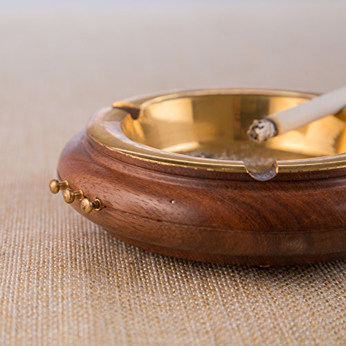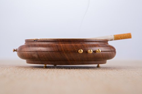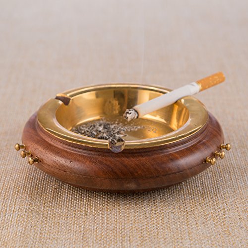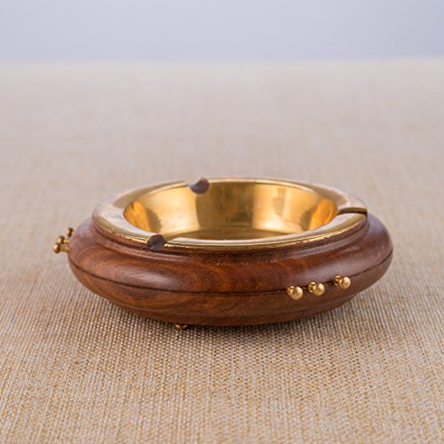 -. Title : Rusticity Wood Ashtray for Cigarette with Brass Bowl | Handmade | (5x5 in)