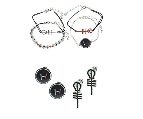 -. Binding : Jewelry -. Brand : Twenty One Pilots -. Department : womens -. EAN : 0787637964591 -. Feature : Set of four bracelets / Post-insertion earring set from Twenty One Pilots with metal & enamel symbol designs. / Base metals / Imported -. Label : Twenty One Pilots -. Manufacturer : Twenty One Pilots -. Model : 787637964591 -. MPN : 787637964591 -. PartNumber : 787637964591 -. ProductGroup : Jewelry -. ProductTypeName : FASHIONNECKLACEBRACELETANKLET -. Publisher : Twenty One Pilots -. Studio : Twenty One Pilots -. Title : Twenty One Pilots Symbols Earring and Blurryface Bracelet Set -. UPC : 787637964591
