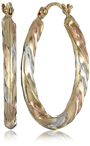 -. Title : 14k Tri-Color Gold Oval Hoop Earrings