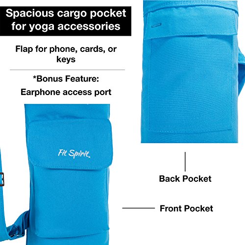 FITS ALL STANDARD MATS: The Fit Spirit Yoga Mat Bag fits all 3mm and 6mm yoga mats. The large front cargo pocket provides ample space to hold accessories, keys, phone, water bottle, and more.