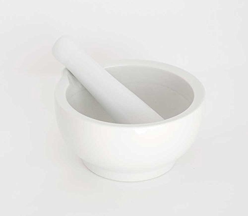 -. Feature : Mortar & Pestle set measures 4.75 inches wide and 2.5 inches tall / Use for crushing and grinding / Useful when making your own paint / Hand glazed white porcelain surface will not stain
