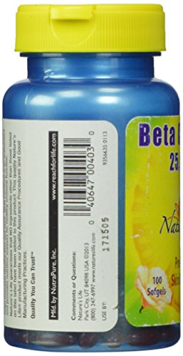 Nature's Life beta carotene Rich in carotenoids Contains 100 softgels Brand : Nature's Life MPN(PartNumber) : 040647004030 EAN : 0040647004030 Product Dimensions(LxWxH) : 6x6x10cm ; 23 g Package Dimensions(LxWxH) : 9x5x4cm ; 23 g