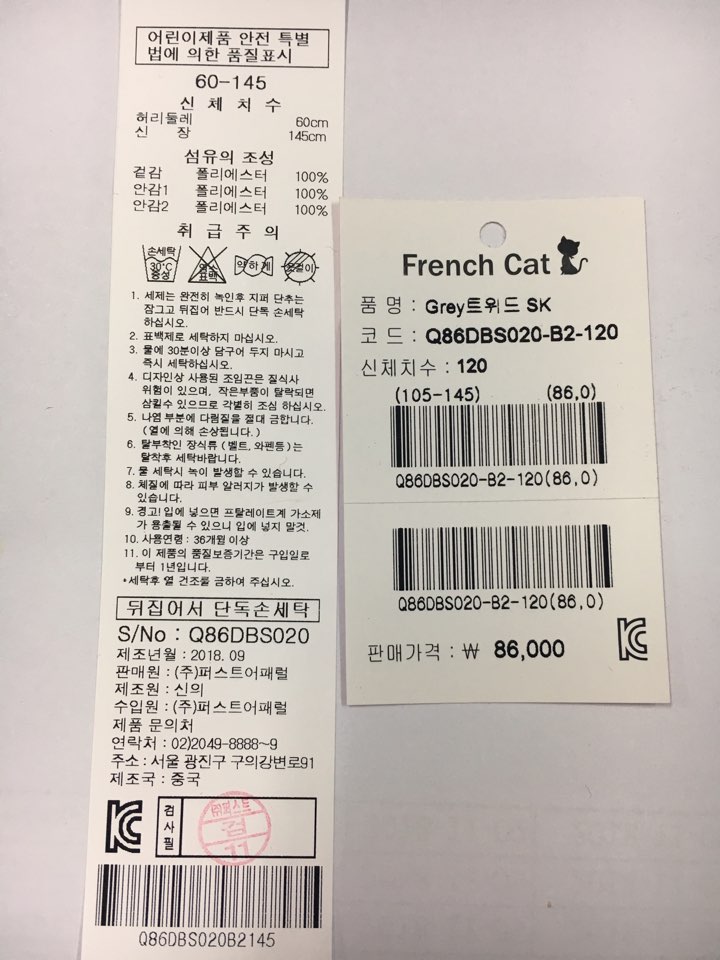 제조자 : 퍼스트어패럴