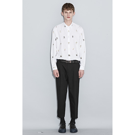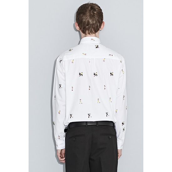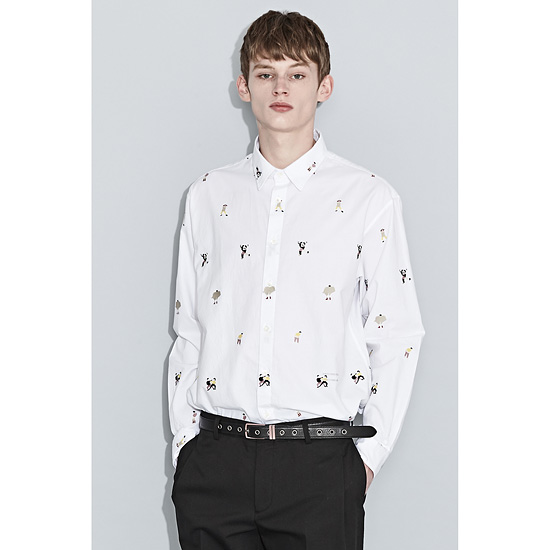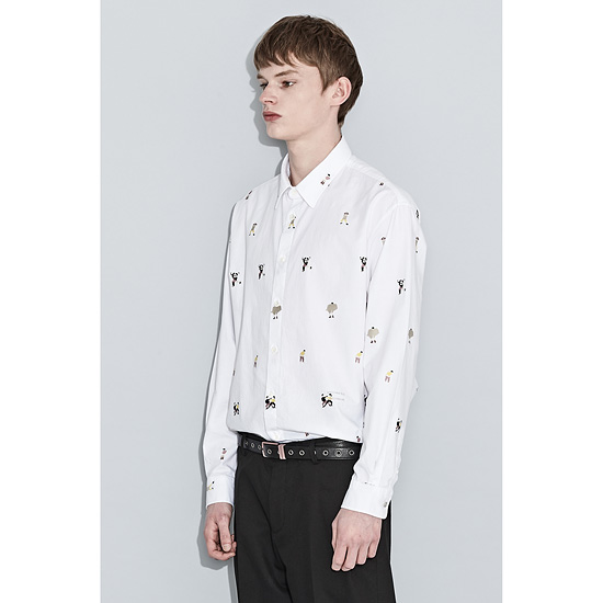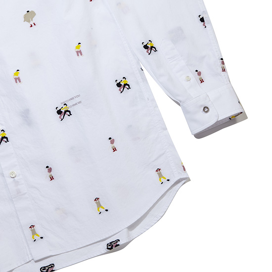 편직하여 시즌 컨셉의 스토리를 반영한 유니크한 느낌의 기본 화이트 셔츠.