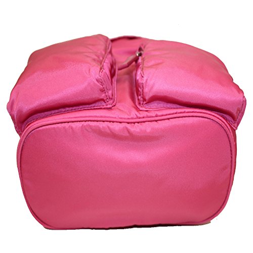 • Drawstring top, front zip pockets, silver hardware