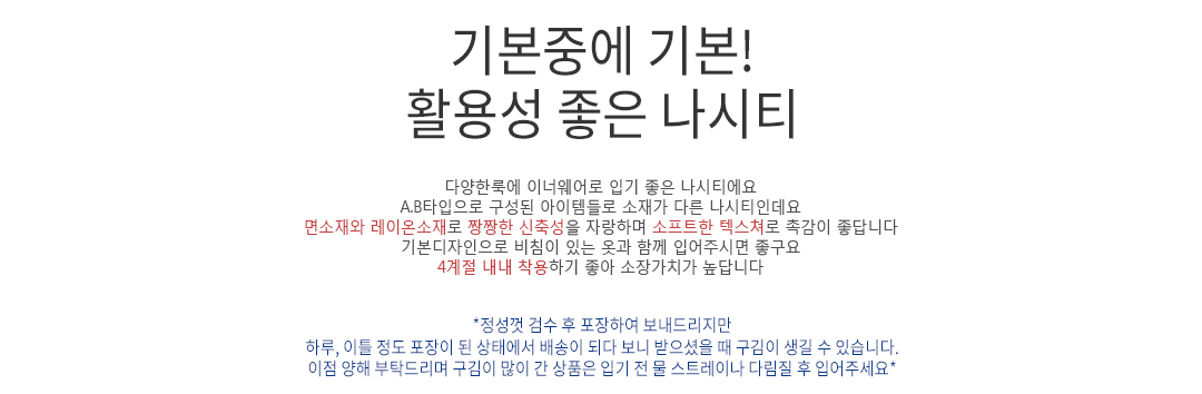 | 소재(Material) | A타입면(cotton/)95%+스판(spandex/)5%/B타입레이온(rayon/)95%+스판(spandex/)5% | ||||