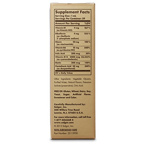 SPECIAL DESIGN: Solgar Sublingual Liquid B-12 with B-Complex is produced in liquid form in order to provide an advantage over conventional B-Complexes. This design offers and easy to use liquid formula for those who have difficulty swallowing tablets