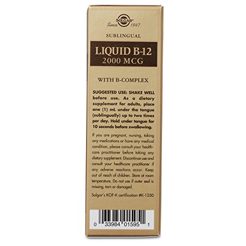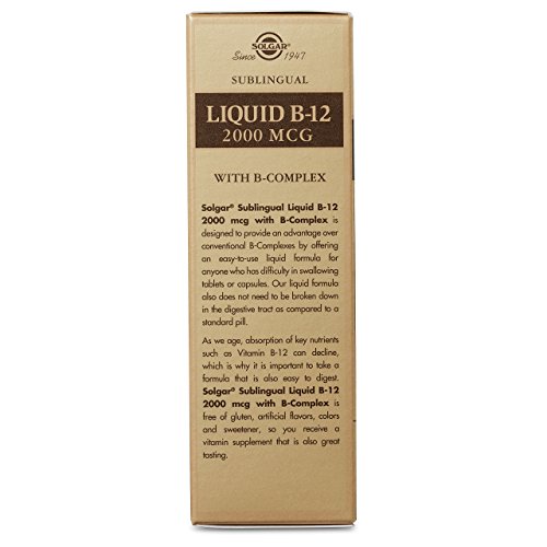 s we age, absorption of key nutrients such as Vitamin B-12 can decline, which is why it is important to take a formula that is also easy to digest. Solgar's Sublingual Liquid B-12 2000 mcg with B-Complex is free of gluten, artificial flavors, colors and sweetener, so you receive a pure vitamin supplement that is also great tasting