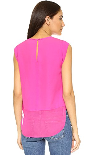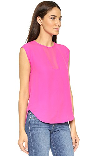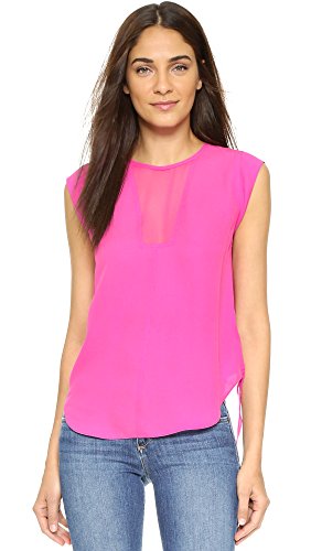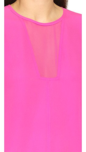A vivid neon Rebecca Taylor blouse in a mix of airy silks. Sheer at front inset and back hem panel. Hook-and-eye closure.