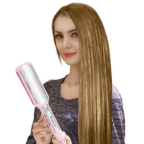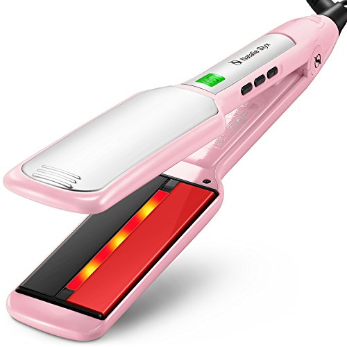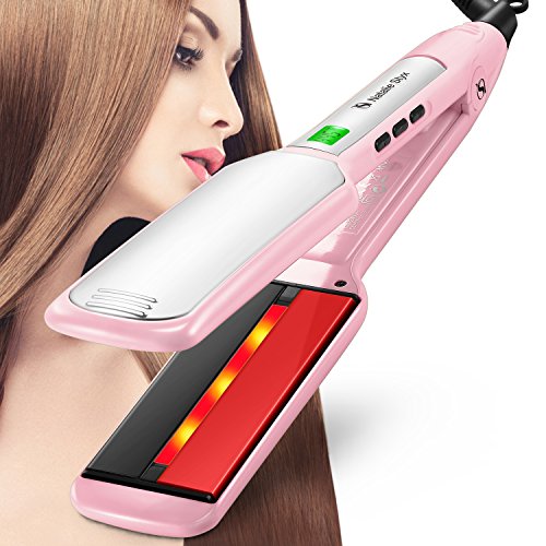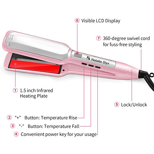 Title : Natalie Styx Christmas Gift Pink Infrared Ceramic Titanium Flat Iron Straightener 5 inch wide plates Straight Iron with Digital LCD Display, Dual Voltage, Salon 2 Clips and Travel Pouch Gift for lady