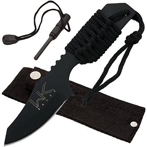 WK CLD19X SERIES FIXED BLADE SURVIVAL KNIFE, BLACK BLADE, CORD WRAPPED HANDLE, 7-INCH OVERALL, MAGNESIUM FIRE STARTER ROD (BLACK)