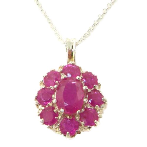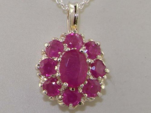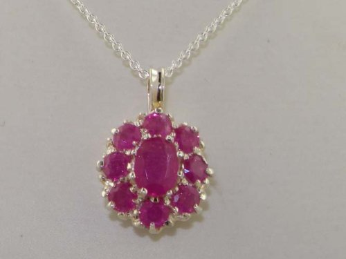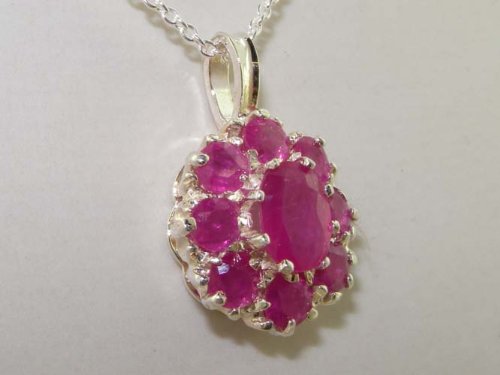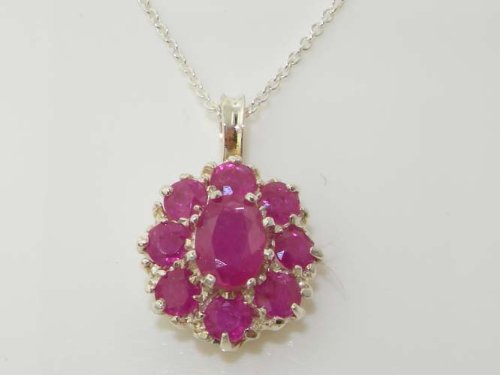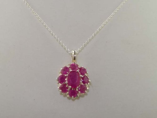 -. Title : Luxury Ladies Solid 925 Sterling Silver Natural Ruby Large Cluster Pendant Necklace - Ideal for Christmas, Birthday, Anniversary or Mothers Day Gift