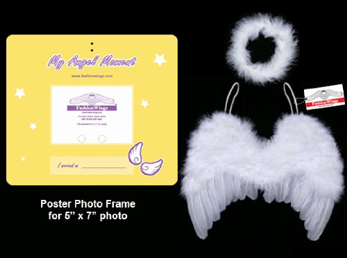 -. Feature : Style: Angel of Love, Size: Medium, Marabou on top with one layer of feather flats / Dimensions: 13.5"x11.5" open flat. Fits 6-18 month baby toddlers. / Elastic shoulder straps, elastic marabou halo, wings bendable at center / Used as photo posing props and costume. Adult Supervision Required at All Times. / My Angel Moment Bonus Poster Photo Frame for 5"x7" photo.