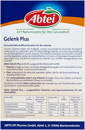 -.Mit Glusosamin, Chondroitin, Teufelskralle& Antioxidantien / Umfangreiche Nährstoff-Kombination für die Gesunderhaltung und Beweglichkeit / Mit Glusosamin, Chondroitin, Teufelskralle und Antioxidantien / Zur Unterstützung einer normalen Knorpel- und Knochenfunktion / Glutenfrei / PZN 1173889 Abtei - 107 Naturrezepte für Ihre Gesundheit
