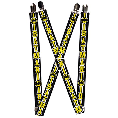 Batman Bat Signal Triple Stripe Black White Yellow Suspenders 1.0" Wide
