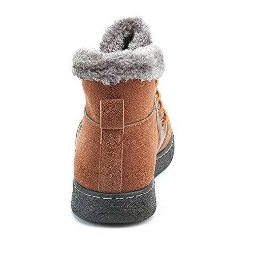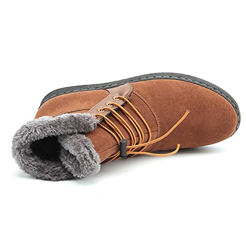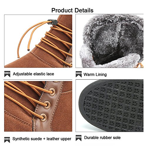 Product Description Lining Material: Plush, faux fur Toe style: round toe Style: Casual fashion Closure: Lace up Sole material: Rubber Season: Winter Upper material: Synthetic Suede leather upper Popular elements: Sewing thread Package Including 1*Pair of Shoes Without Box