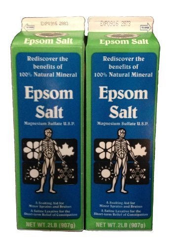 Studio : Epsom Salt Plus Inc. Publisher : Epsom Salt Plus Inc. Binding : Health and Beauty Product Description 2 cartons of 2 LB, Epsom Salts, Magnesium Sulfate U.S.P., Soaking Aid For Minor Sprains Bruises, Saline Solution For The Short Term Relief Of Constipation.