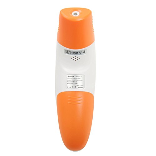 * Forehead Ear measurement, measuring distance: 0 cm * Object Ambient temperature, measuring distance: 5 cm * Operation environment: 15-35℃ 85% humidity * Accuracy: ±0.2℃ /±0.4℉, Display resolution: 0.1℃/0.1℉ * Memories: 20 sets * Body temperature (32-42.9℃/89.6-109.2℉), Object temperature (0-100℃/32-212℉) * Power supply: 2 x AAA batteries:Zinc Manganese Dry Battery,voltage:1.5V(not include) * Size: 15.2 x 4.4 x 3cm * Weight: 74g without battery * CE Approved
