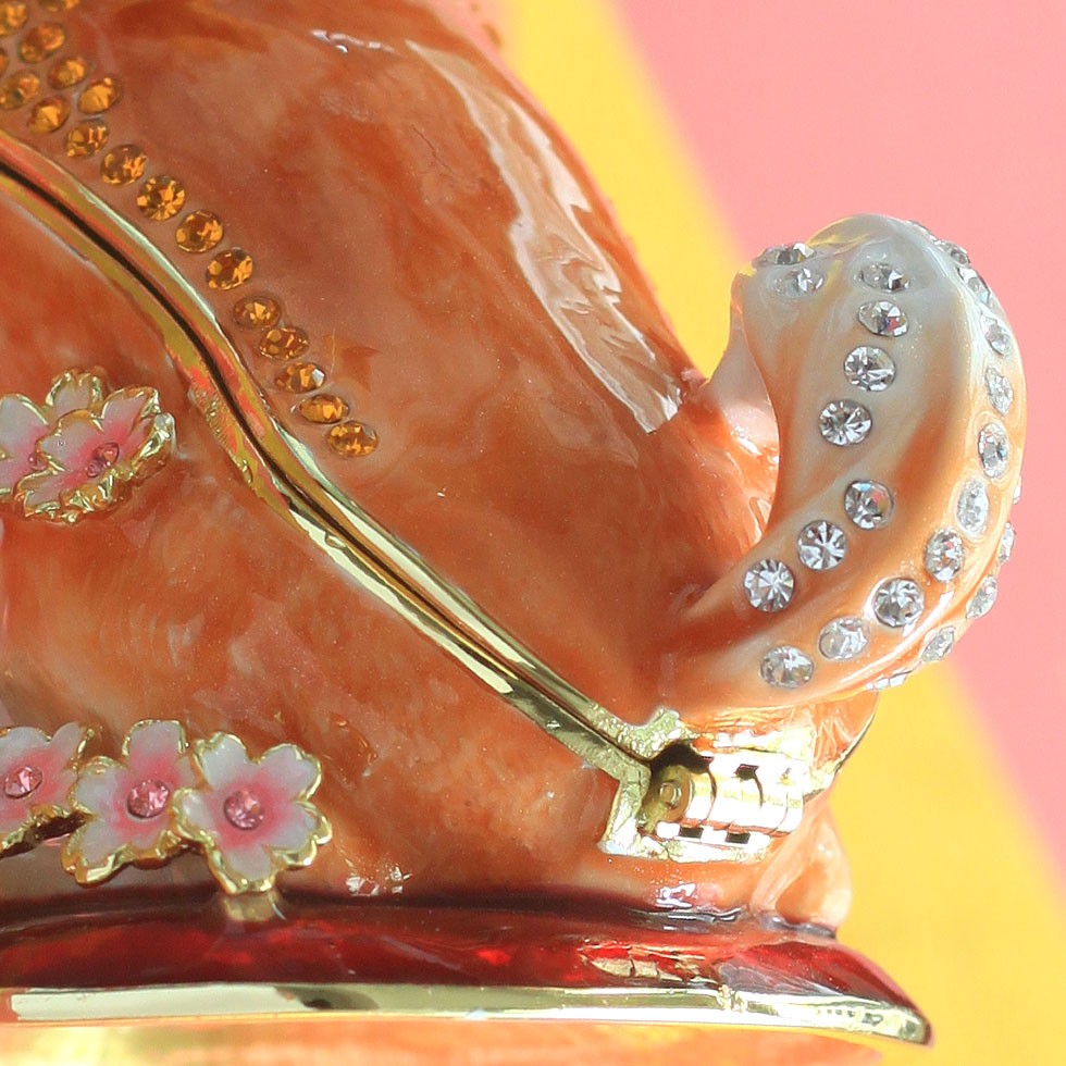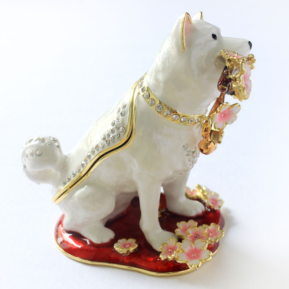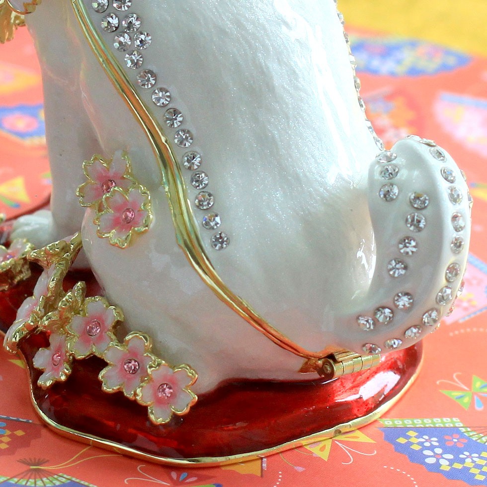 | ジュエリーボックスと言えば、指輪やピアス、ネックレスなどのアクセサリーを入れる引き出し型のケースを思い浮かべる方が多いかもしれません。 ピィアースのジュエリーボックスは、動物や花などをモチーフに作られ、合金製でずっしりとした重さがあります。また高品質のクリスタルガラスを贅沢に使用。まるでジュエリーボックスそのものが宝石のような、高級感溢れる仕上がりです。 小物入れとしても使えるように開閉口には磁石が取り付けてあり、アクセサリーなどなくしやすいアイテムの収納ができます。キラキラと美しく輝く宝石箱は、そのまま飾って楽しめるインテリア雑貨として多くの方に愛されています。 国内トップクラスのジュエリーボックスメーカーであるピィアースは、2004年ごろから本格的に宝石箱の製造を始め、現在のジュエリーボックスはなんと300種類以上。大規模展示会でもご好評いただいており、全国有名百貨店でも販売されています。 自社工場でひとつひとつ丁寧に手作りし、原型作成、研磨、加工、着色、小さなクリスタルガラスの取り付けなども全て手作業で行われるこだわりのハンドメイド品。完成後は厳しい検品の後、丁寧に梱包作業をしお客様にお届けしております。 ピィアース商品は、全国有名百貨店および全国有名宝石店チェーンにてお取り扱いいただいている高品質商品です。 ★自分へのご褒美に…コレクションして並べて飾ると、さらにかわいらしさUP! ★恋人へのプレゼント…中にアクセサリーを入れて、サプライズな贈り物として ★家族への感謝ギフト…お母さんや姉妹へ、日頃のありがとうの気持ちを込めて ★誕生日プレゼント…お友達の喜ぶ顔が見たいから、いつもと違うキラキラギフトを ★小さな女の子へ…まるでお姫様が使っているようなキラキラ宝石箱は女の子の憧れ! |